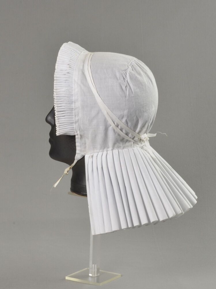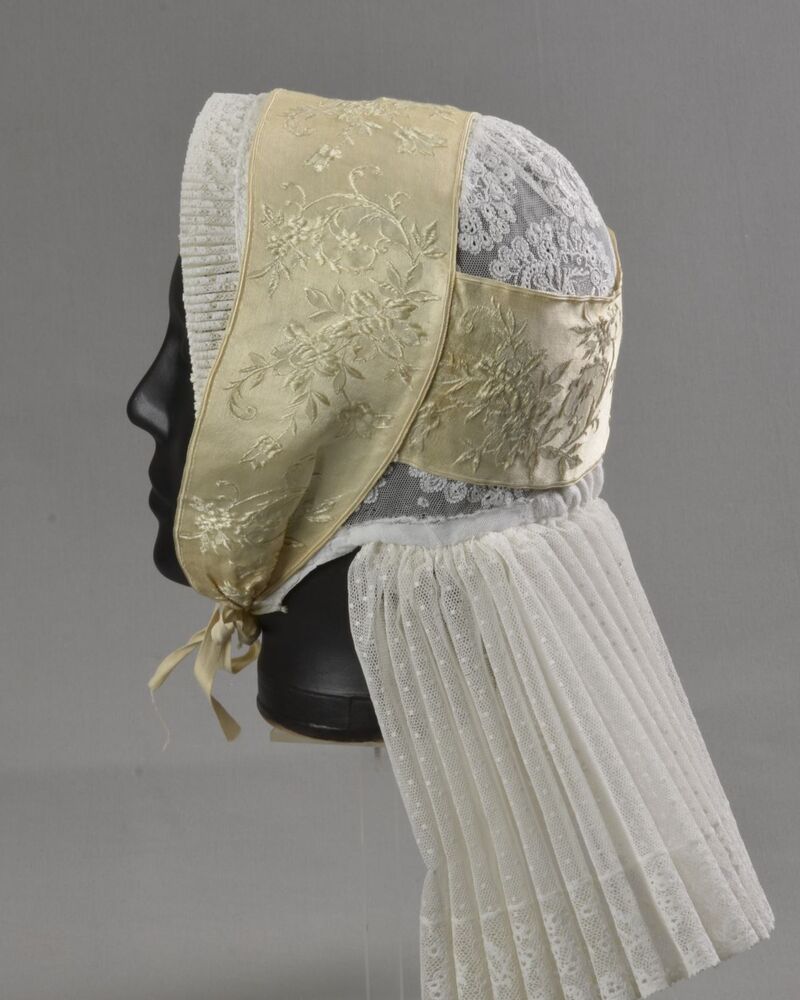 Rouwknipmuts van witte katoen, handgenaaid en in de ...