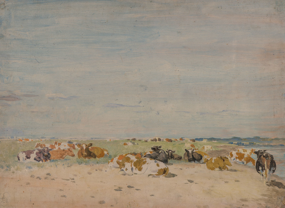 Koeien liggend op zand