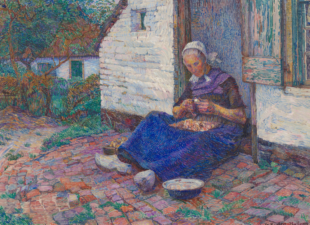 Aardappelschillende vrouw