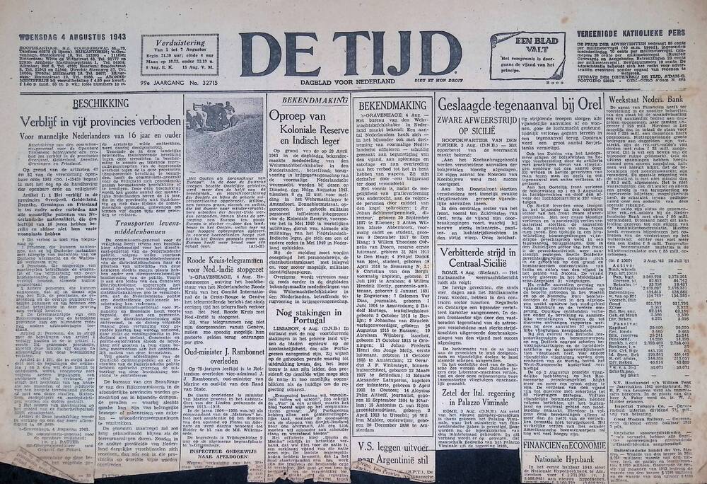 De Tijd. Dagblad voor Nederland. 4 augustus 1943.