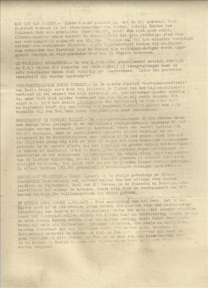 Een aantal krantenknipsels uit de oorlogsperiode 194...