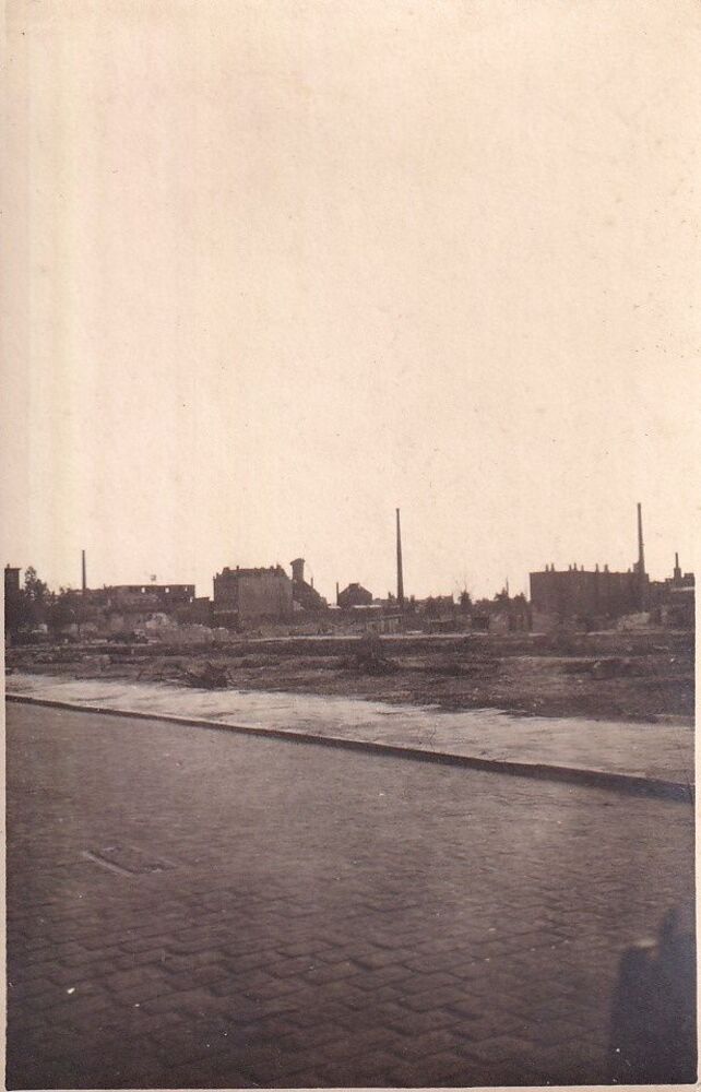 Foto van een straat in Rotterdam met drie fabriekssc...