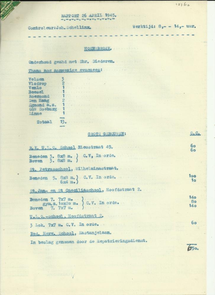 Rapport 26 april 1945 over Hoensbroek door J. Schellinx