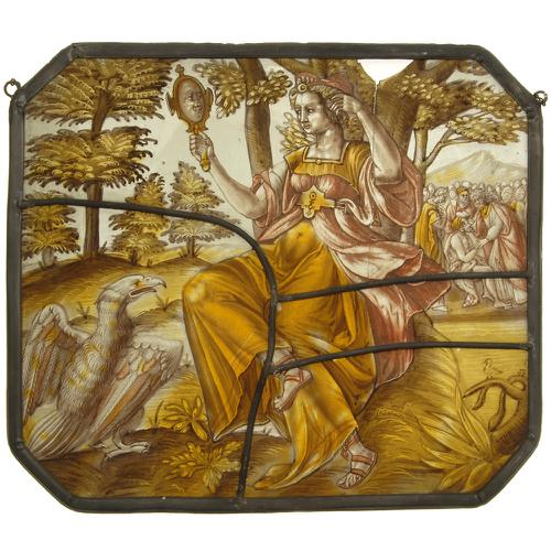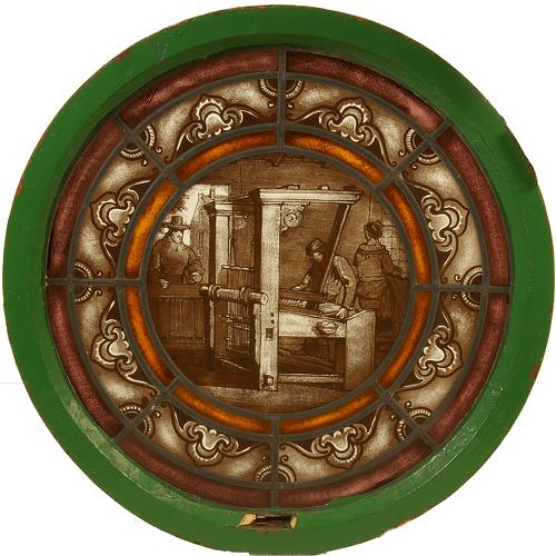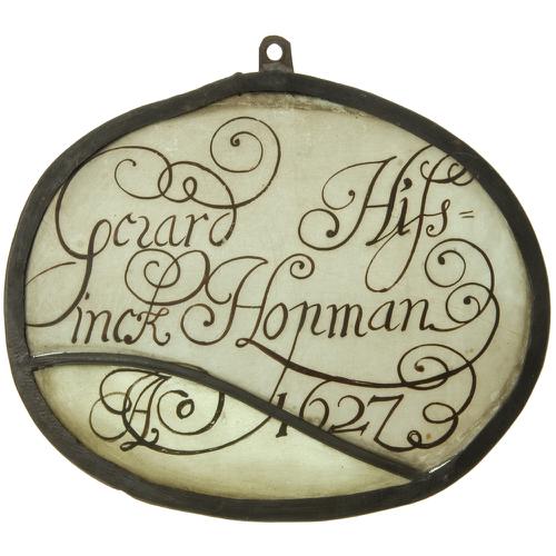 Glas-in-lood raam: "Gerard Hissinck Hopman Ao 1627"