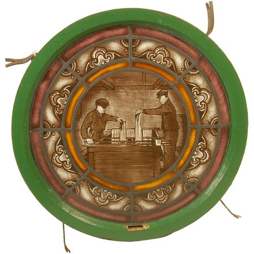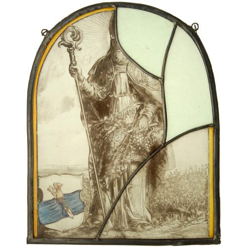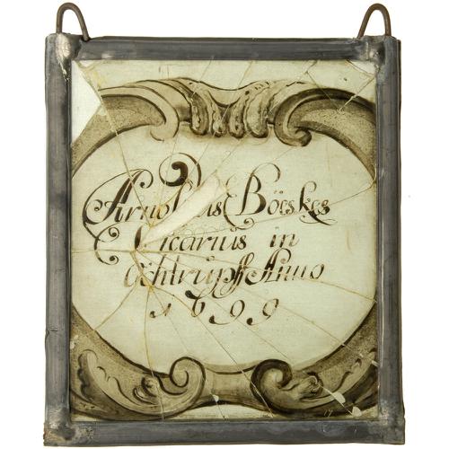 Glas-in-lood raam: "Arnoldus Böeskes Vicarius in Och...
