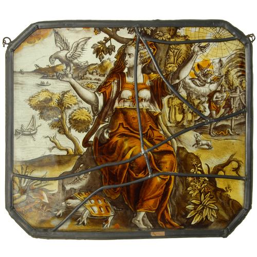 Glas-in-lood raam: "Elysabet Stiftjuffer Houell 1602"