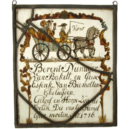 Glas-in-lood raam: "Berent Niemeijer van Bakelt en G...