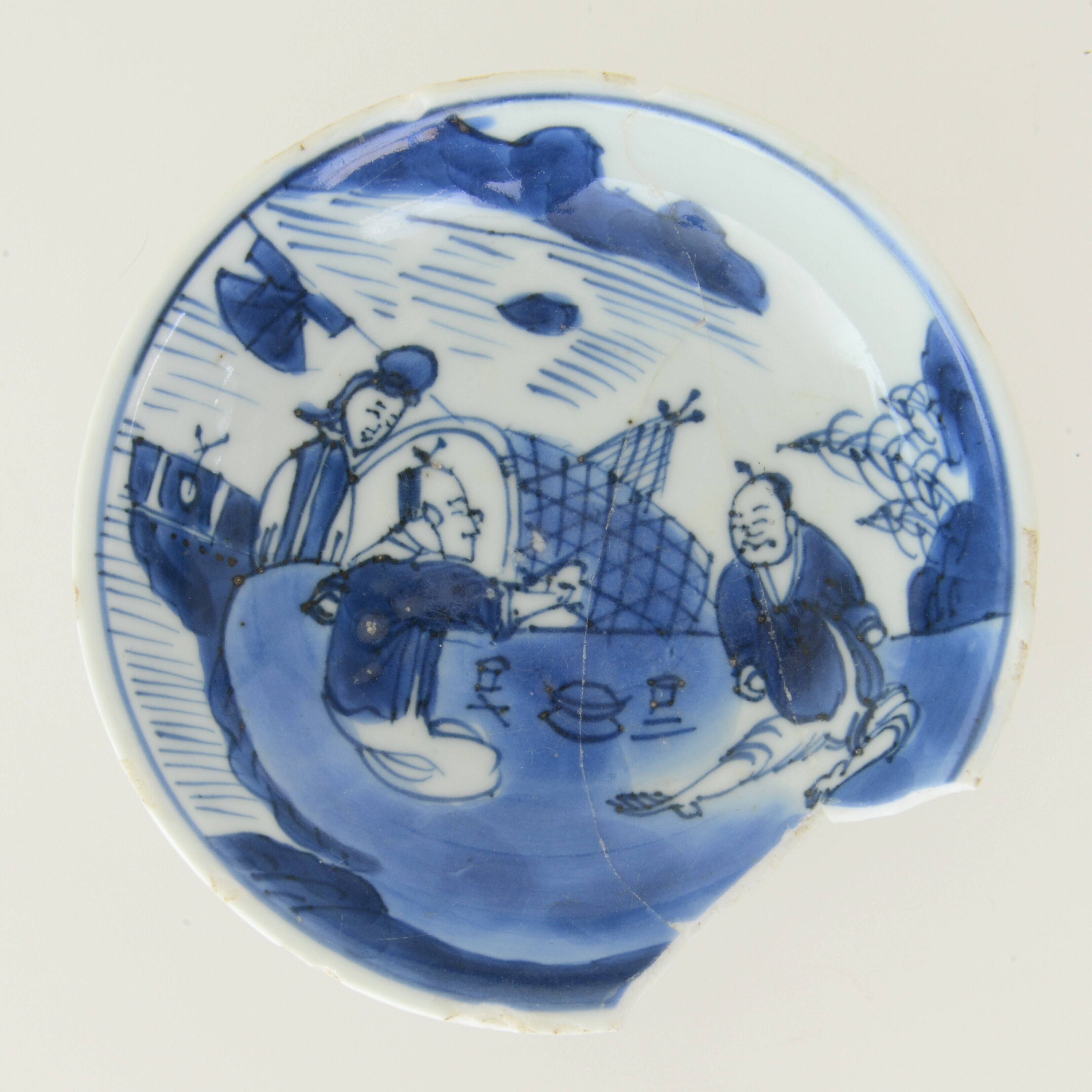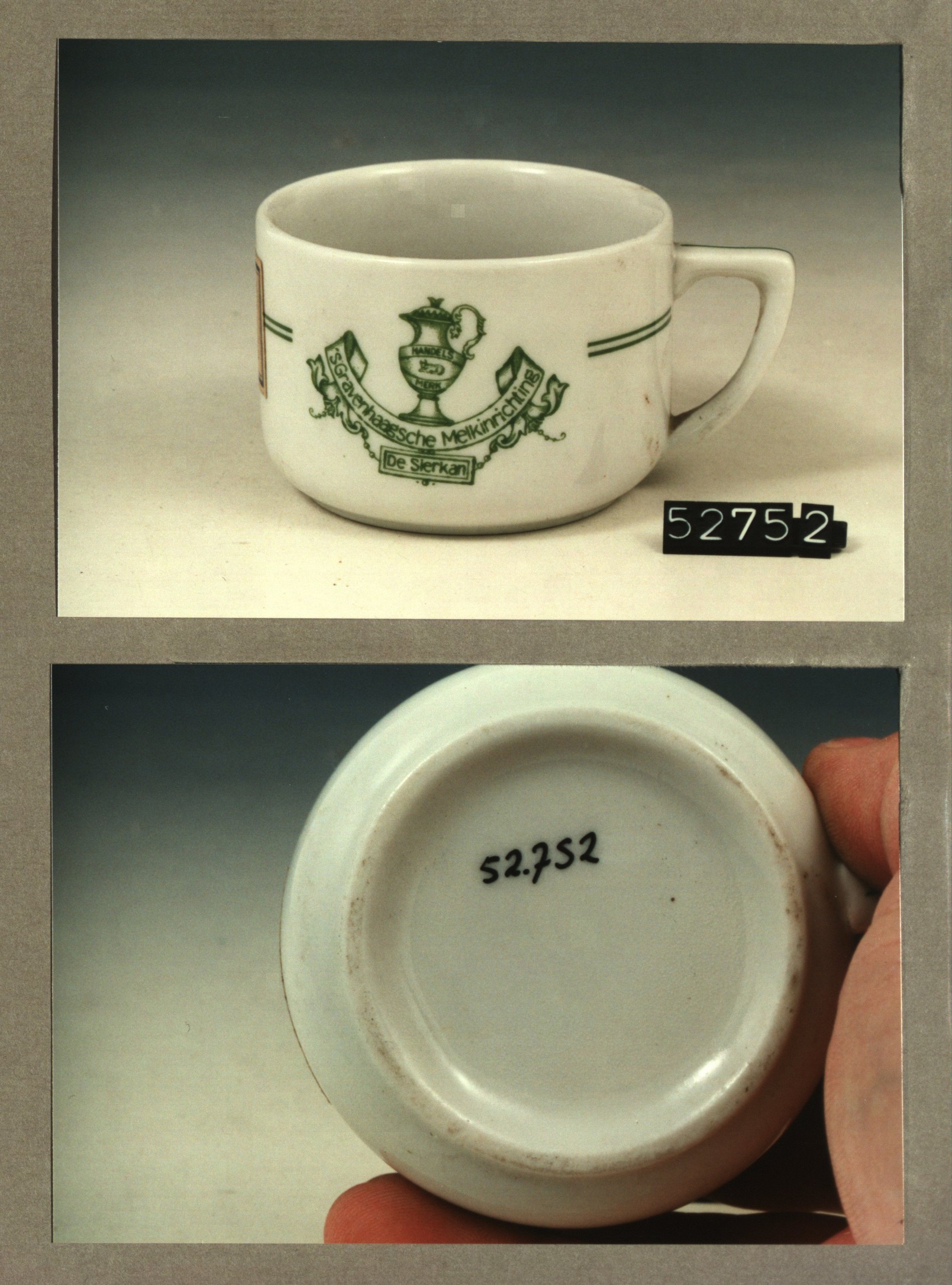 Kop met opschrift, model P met decor De sierkan s'Gr...
