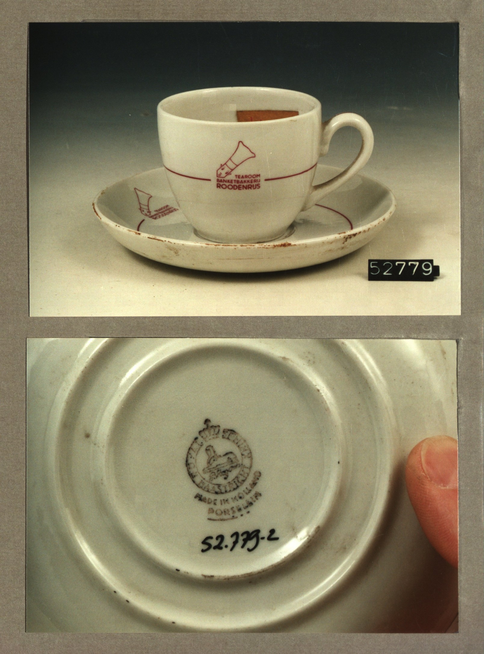 Kop en schotel, model N met decor Tearoom banketbakk...
