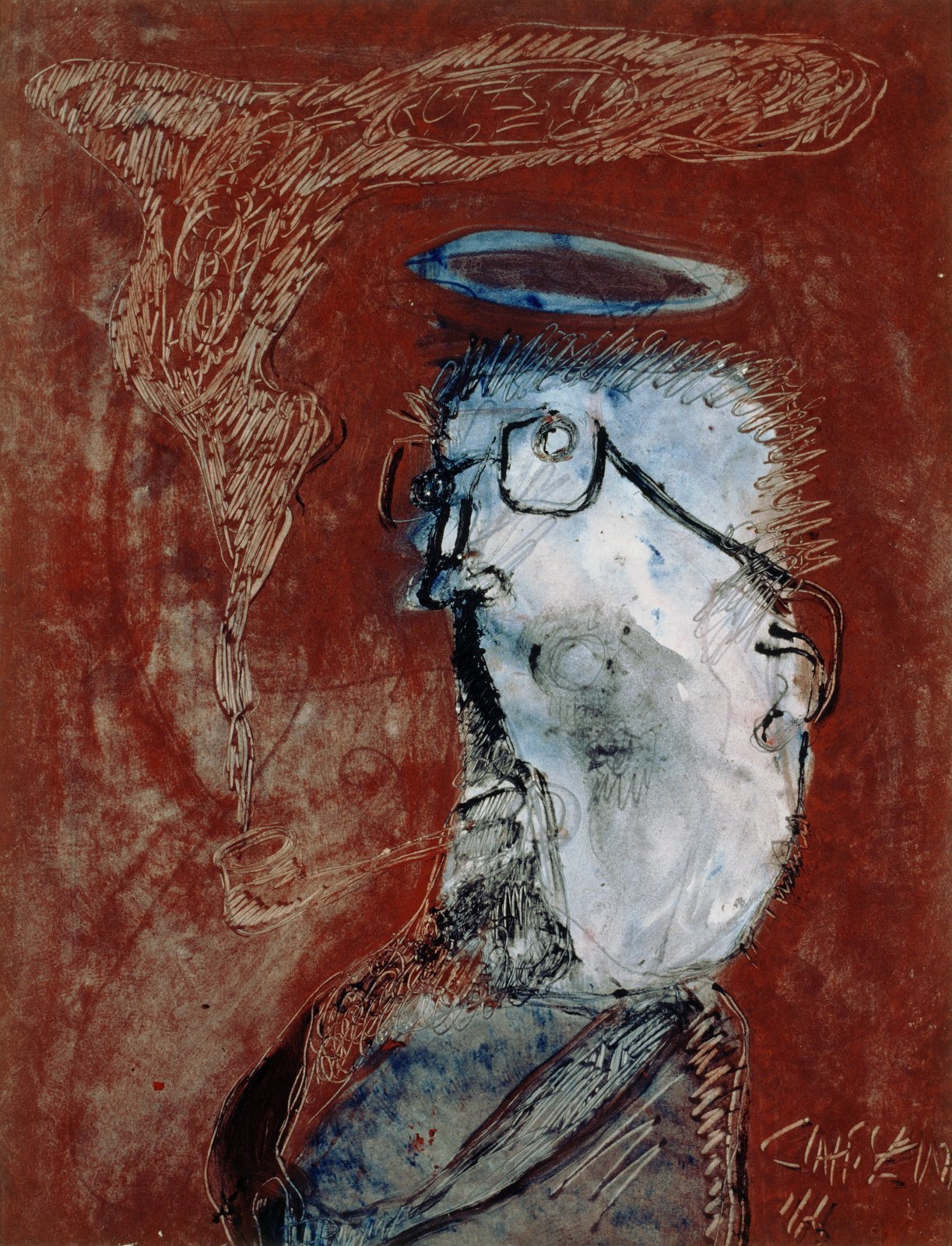Pijprokende figuur met rookkring of aureool
