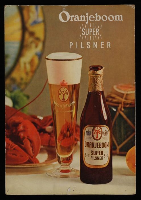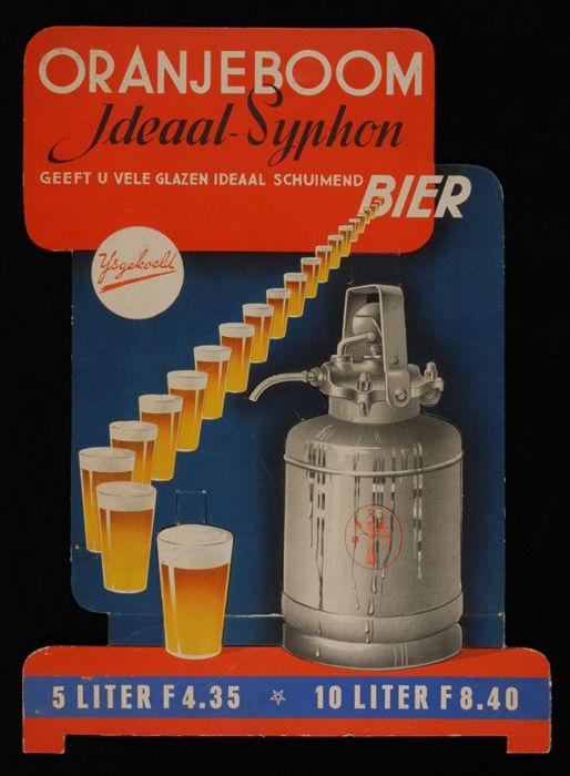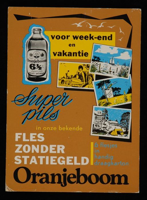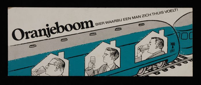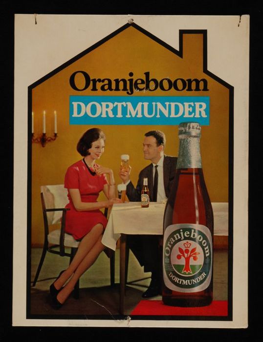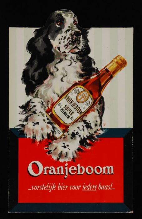 Reclamebord van Oranjeboom met in de vorm van een br...