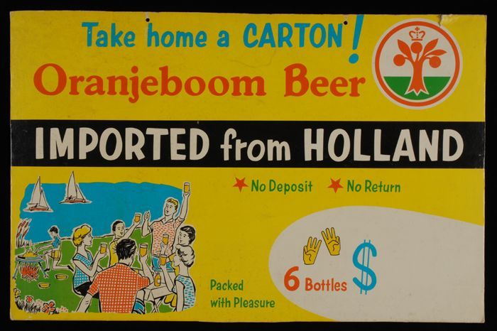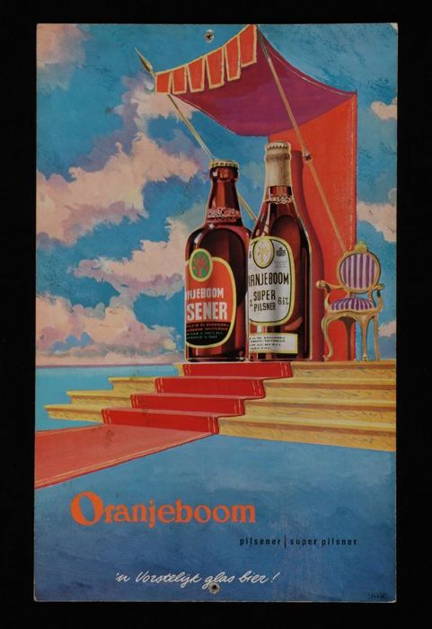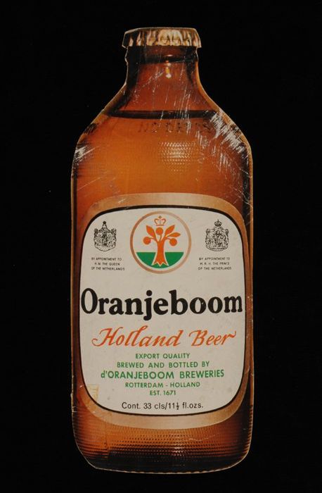 Reclamebord van Oranjeboom met afbeelding van bierfl...