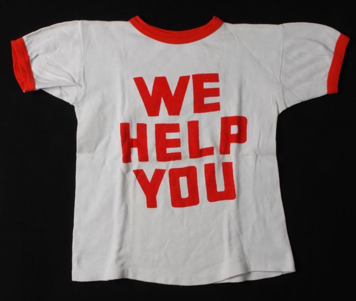 T-shirt van wit katoen met rode belettering, "WE HEL...