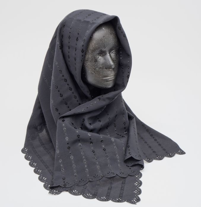 Zwarte hoofddoek met uitgestansd motief