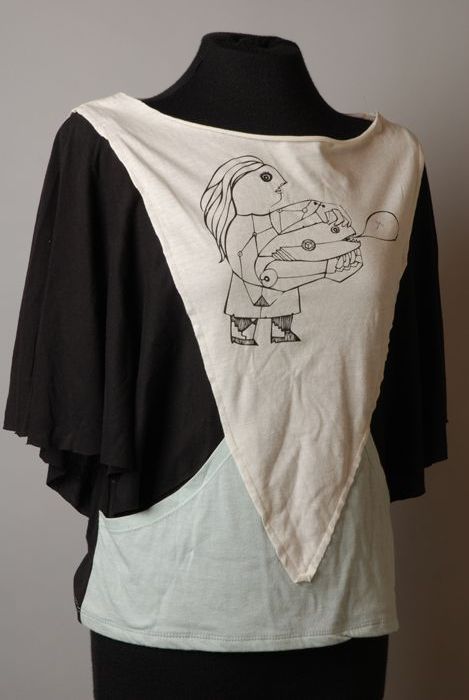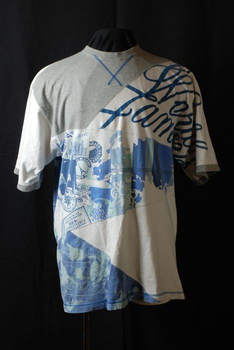 T-shirt met wit, zwart en blauw en zwarte afbeelding