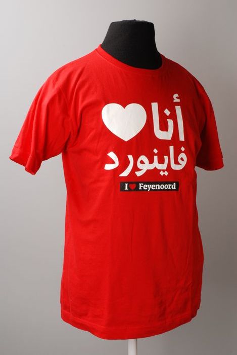 Rood t-shirt, met opdruk in witte letters "I love Fe...