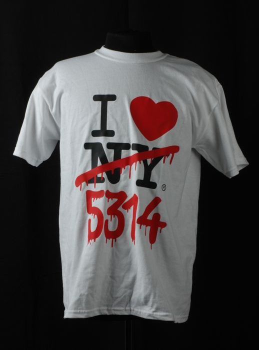 Groen t-shirt met "5314" in wit, oranje, geel en rood
