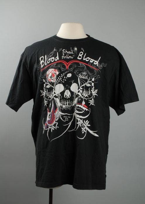 Zwart t-shirt met opdruk in wit en rood en "blood sh...