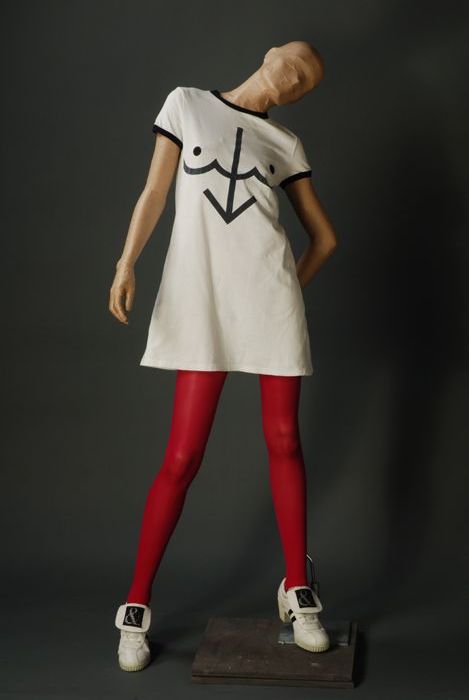 Witte jurk met zwarte afbeelding, "Ell=Bell"