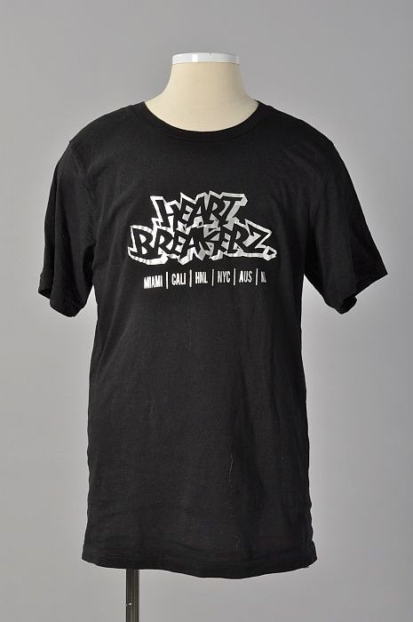 T-shirt, zwart, ronde hals met korte mouwen en opdru...