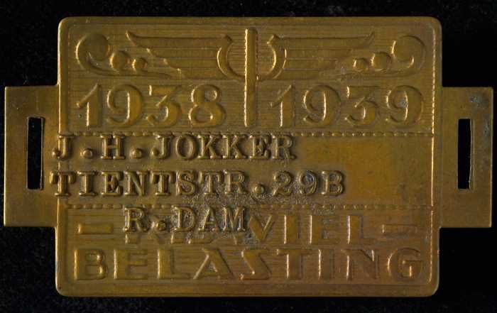 Rijwielbelastingplaatje 1938-1939