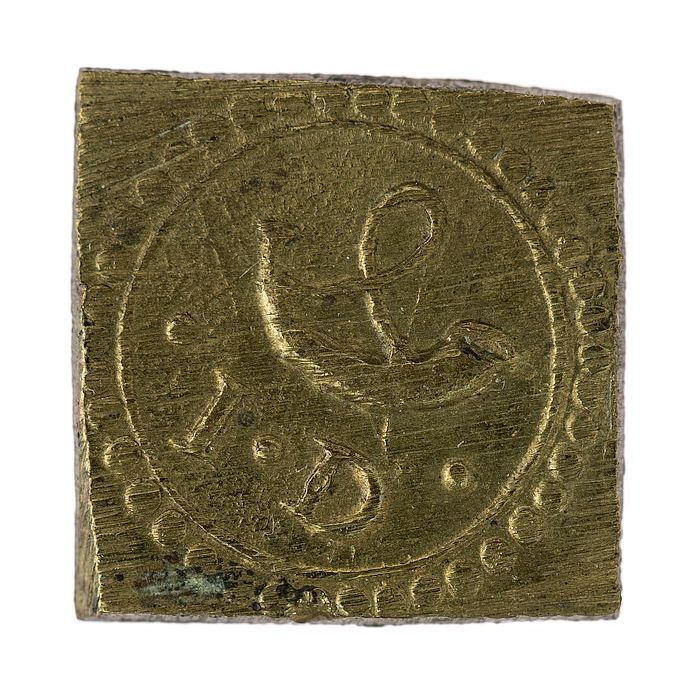 Messing gewichtje, Twee Cruzado, Izaak G. Delen