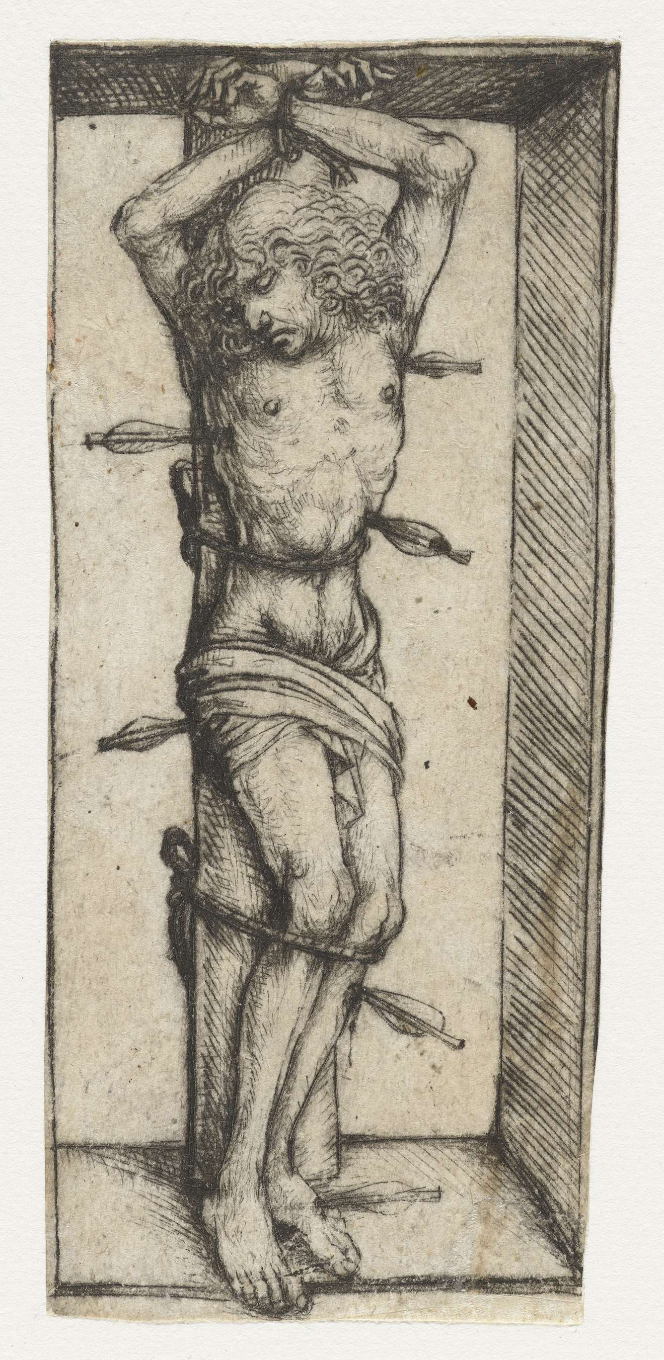 Heilige Sebastiaan aan de geselpaal, met rechter en ...