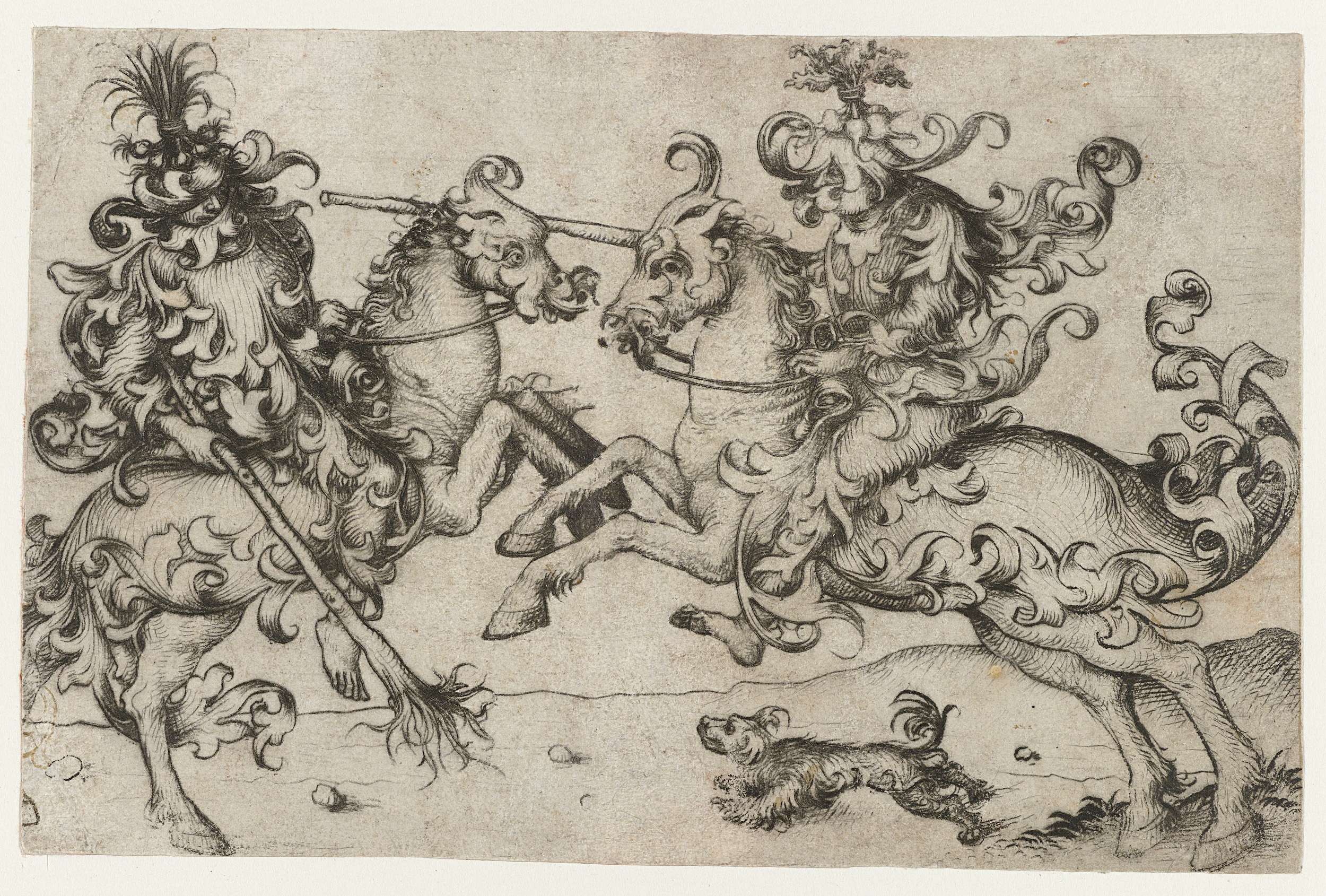 Gevecht tussen twee wildemannen te paard