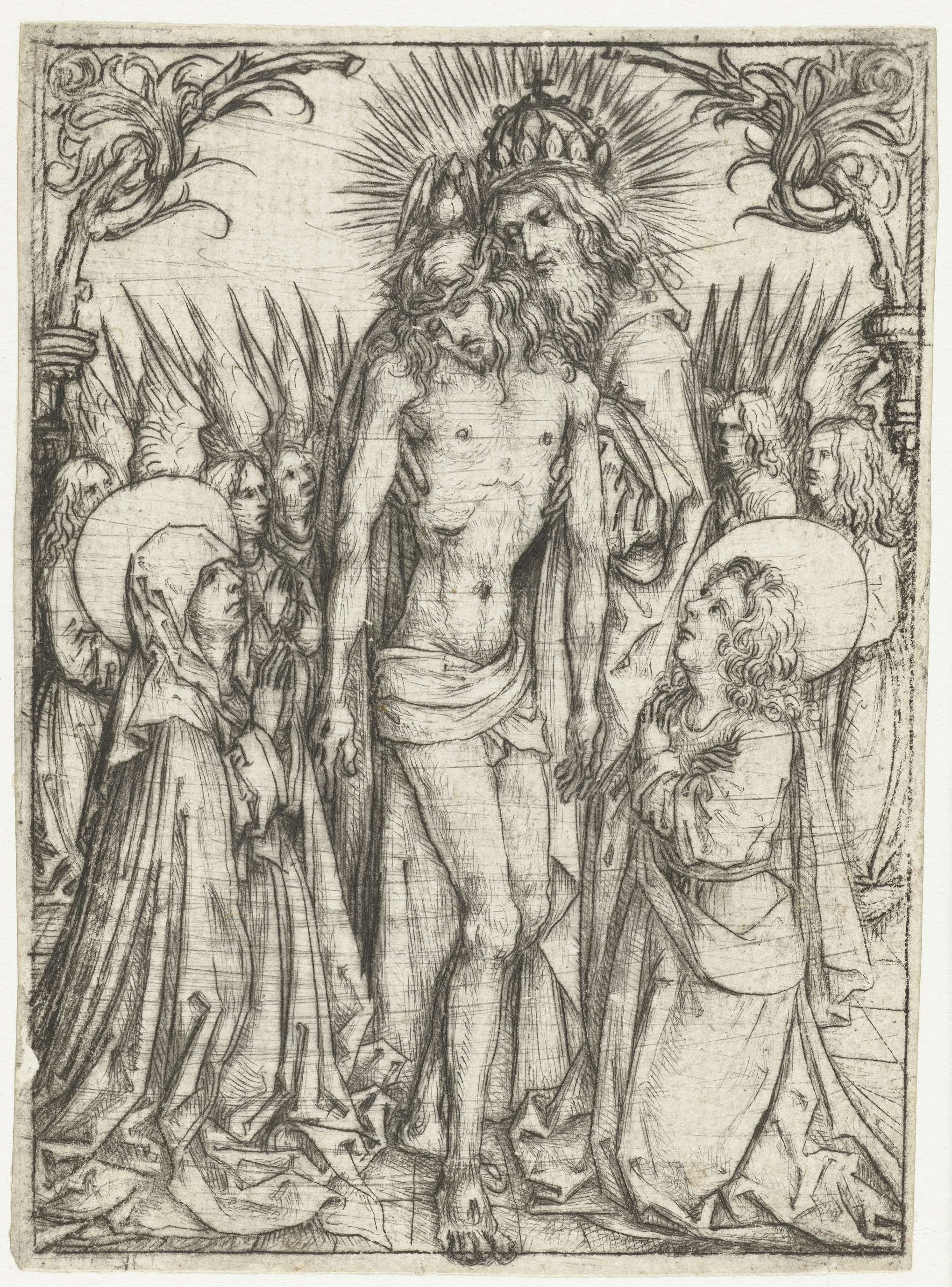Het lichaam van Christus ondersteund door twee engelen
