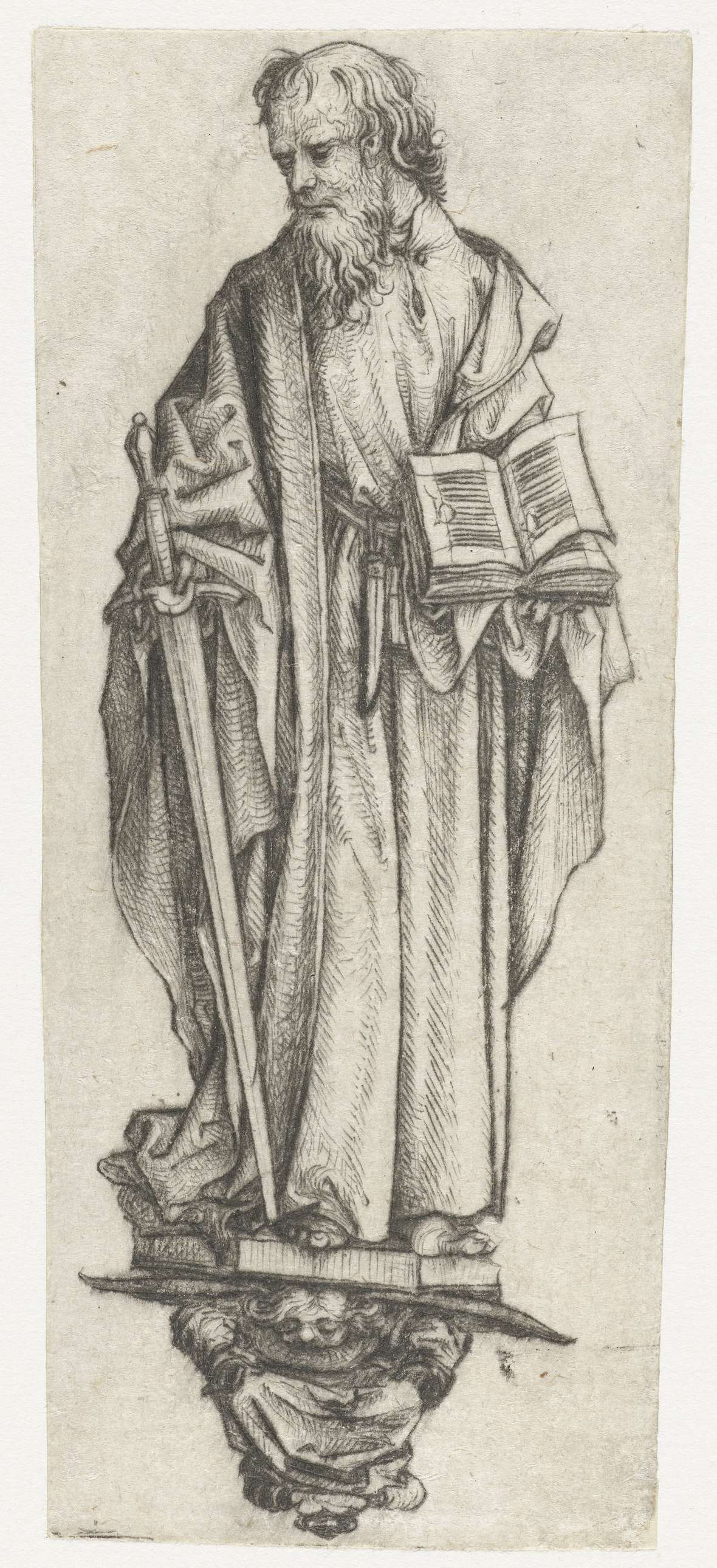 Heilige Paulus, staande op een console