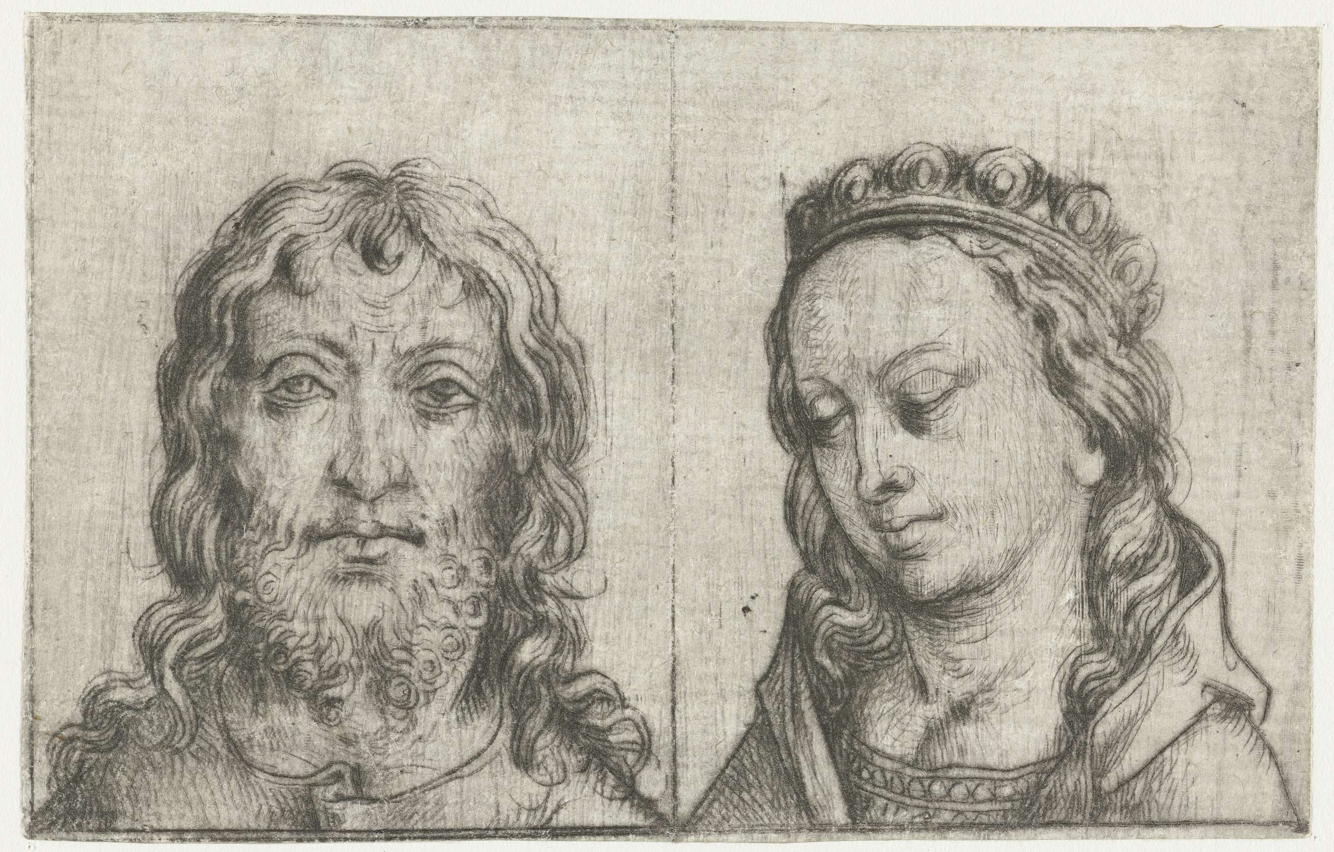 De hoofden van Christus en Maria