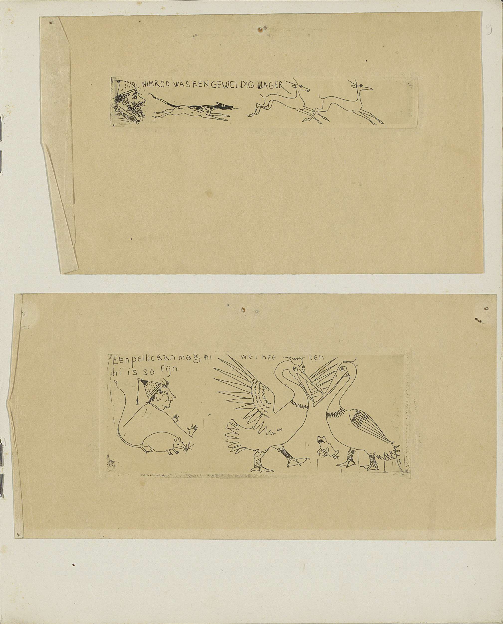Album met 17 bladen met ingeplakte tekeningen en pre...