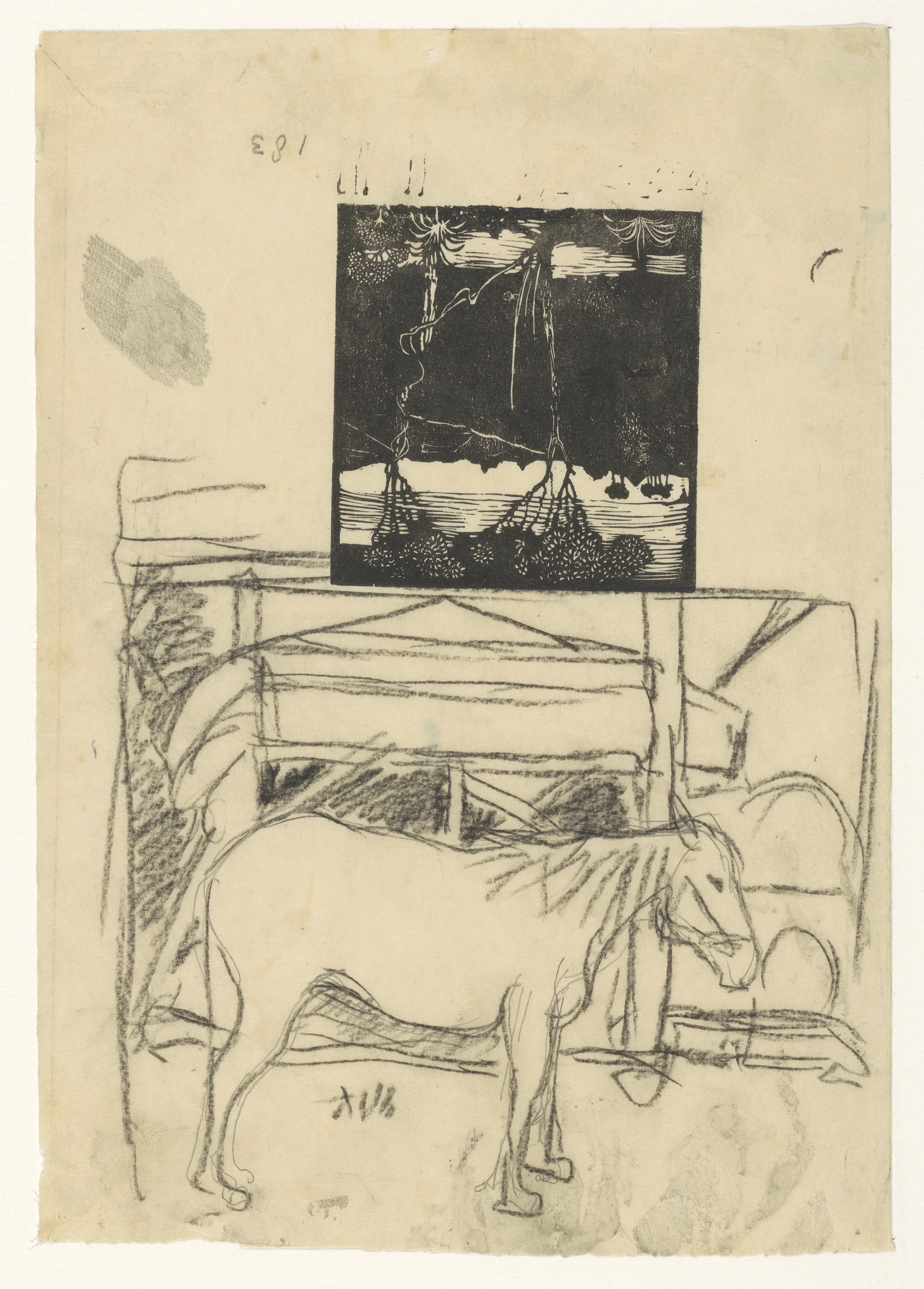 Album met 17 bladen met ingeplakte tekeningen en pre...