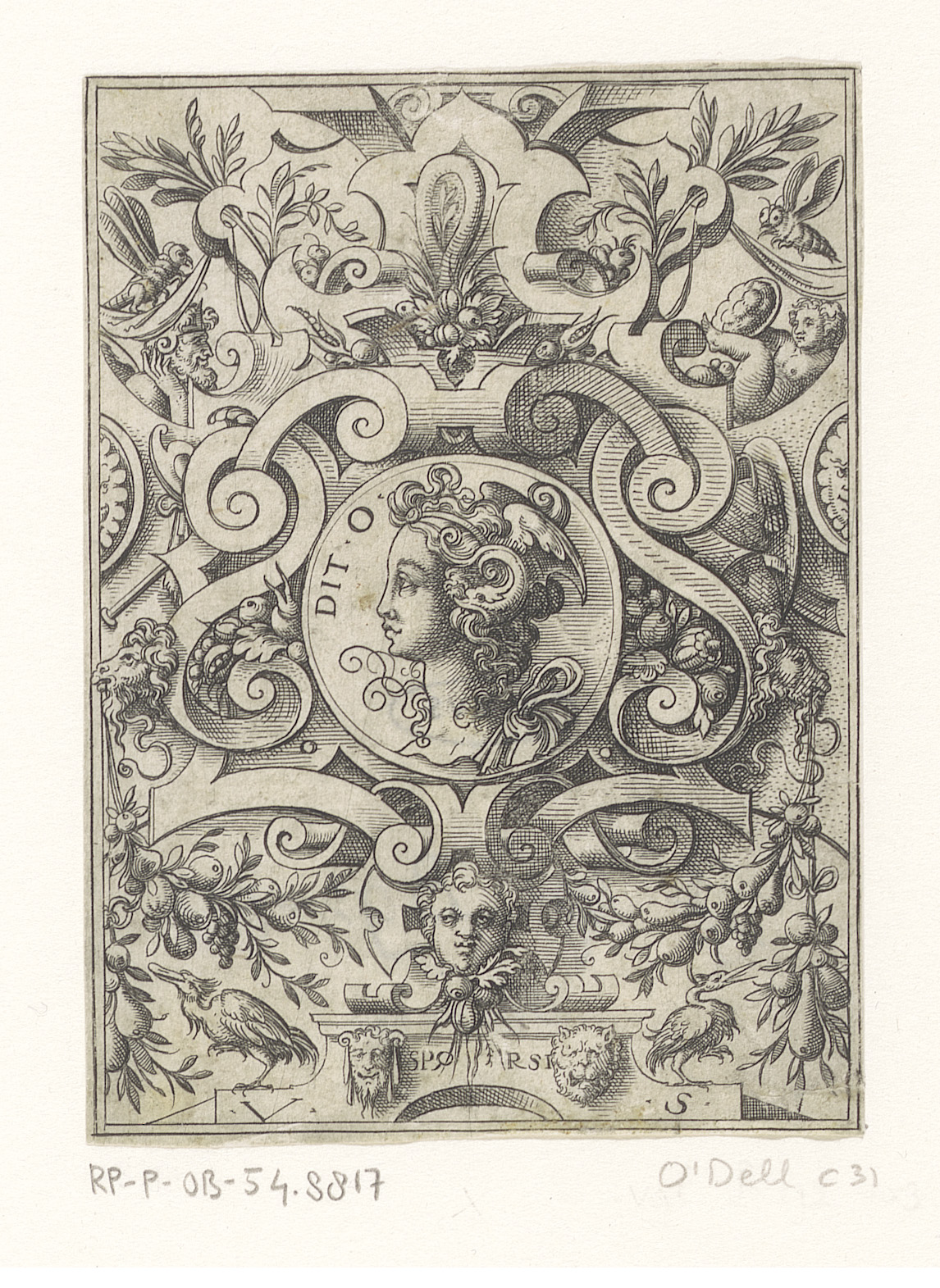Medaillon met Dido in een rolwerk omlijsting