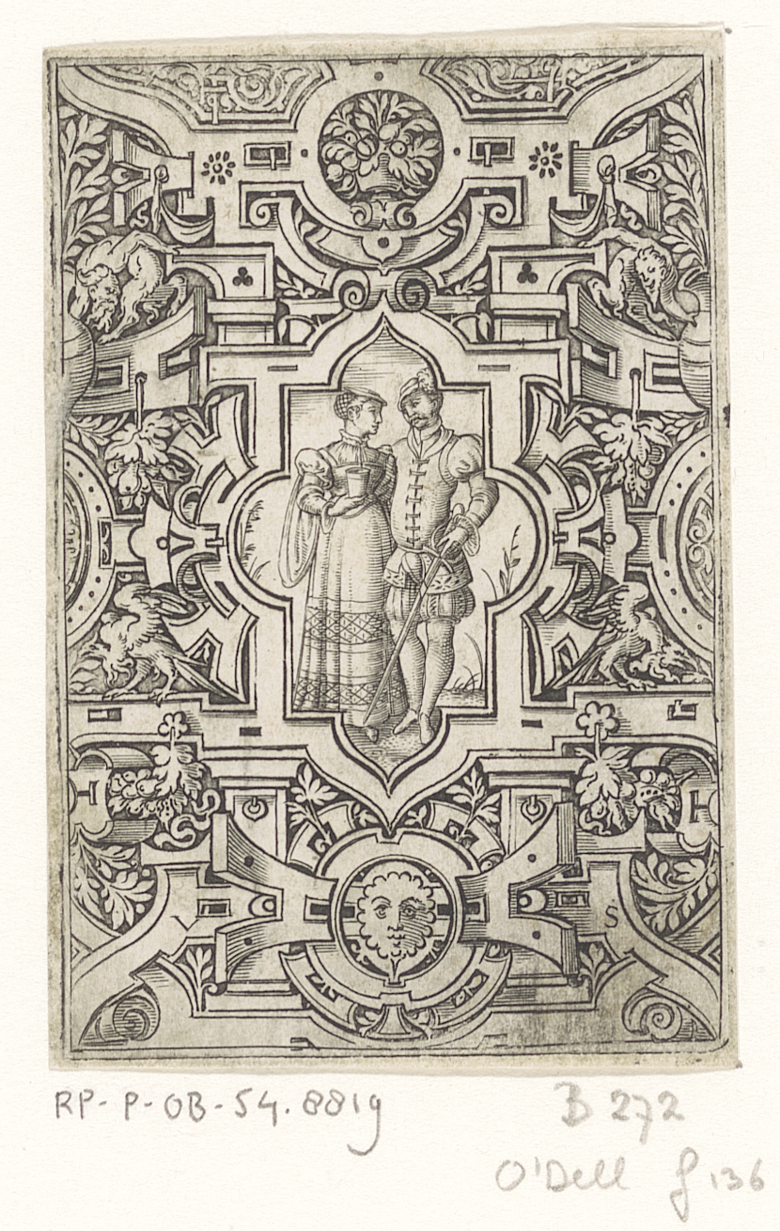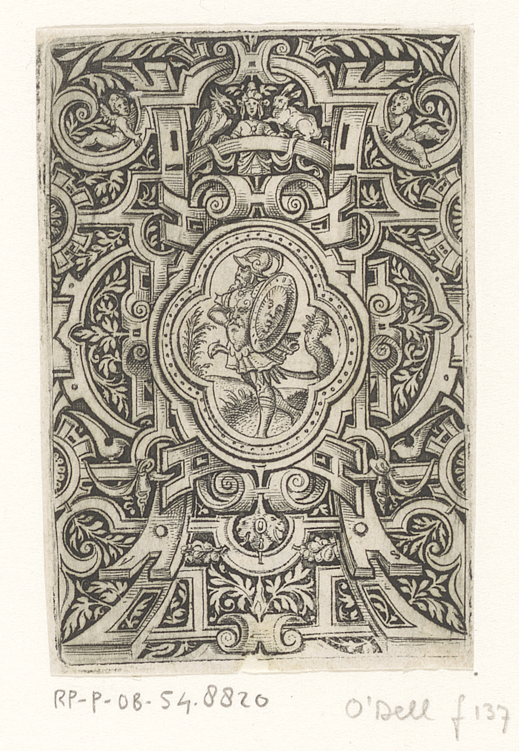 Soldaat met schild in een rolwerk omlijsting
