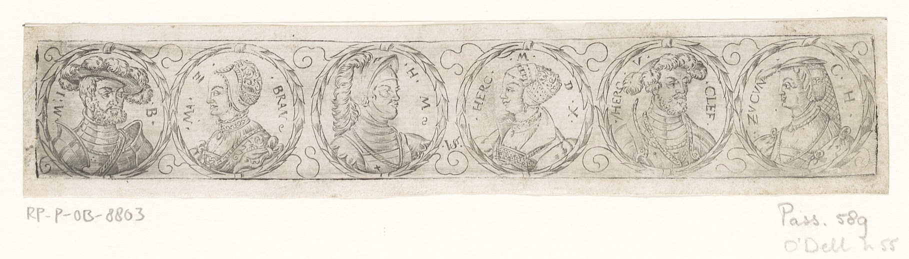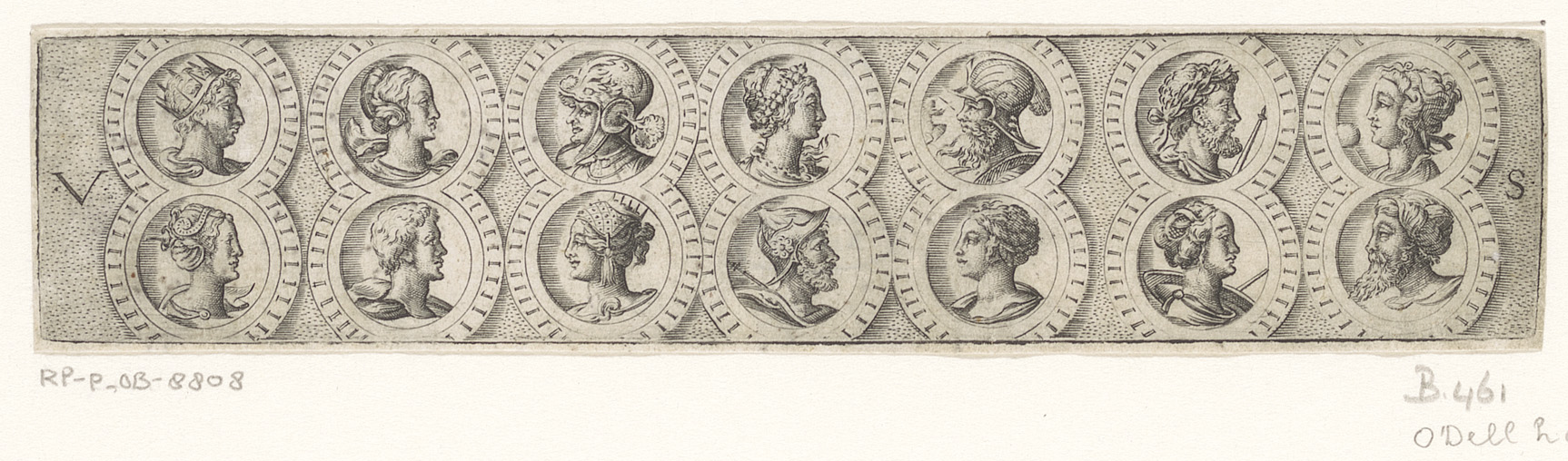 Fries met zes bustes in lauwerkransen