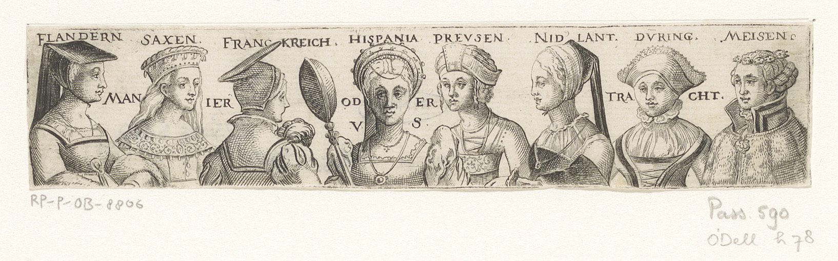 Fries met acht busten van vrouwen van verschillende ...
