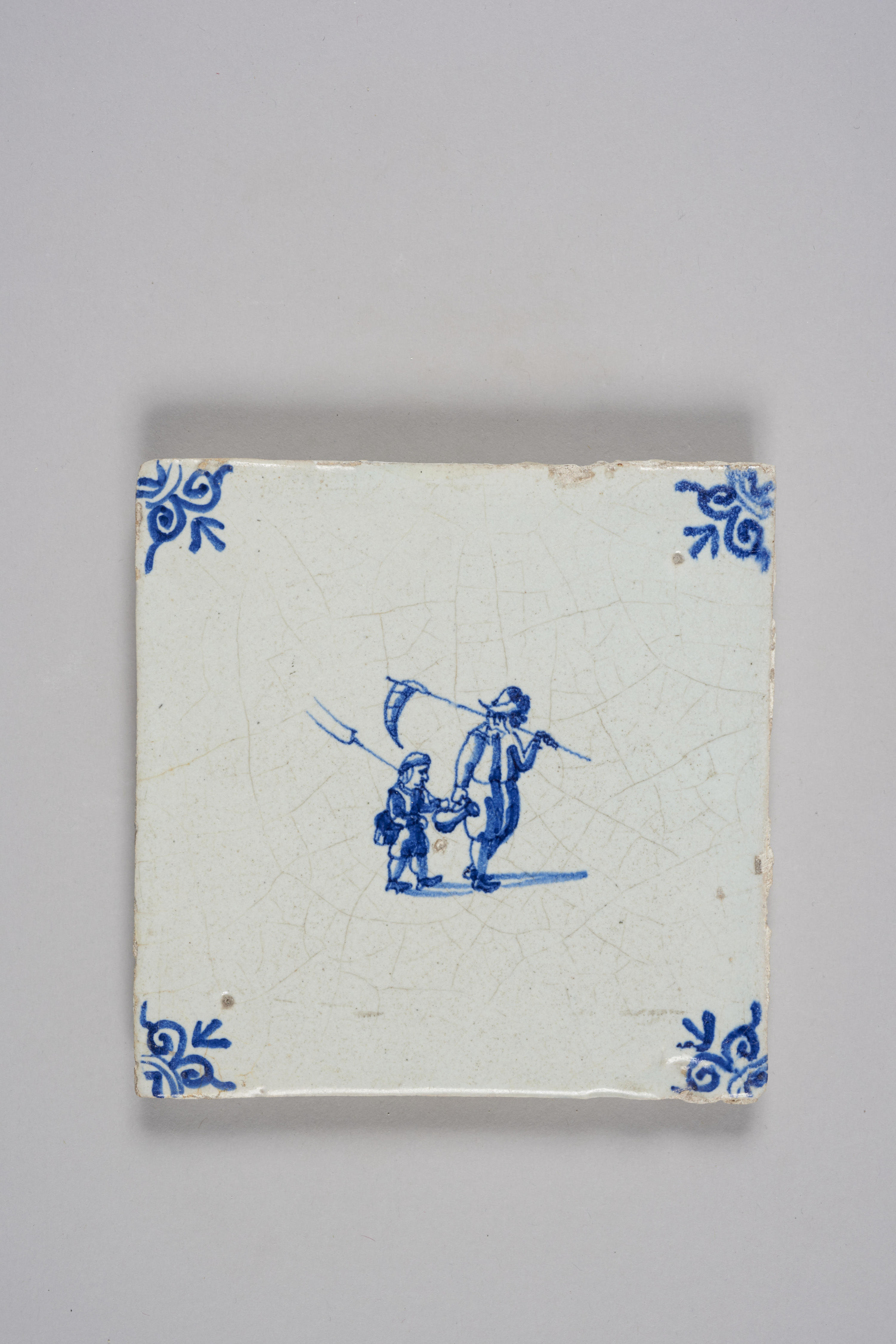 Wandtegel met afbeelding twee mensfiguren met zeis e...