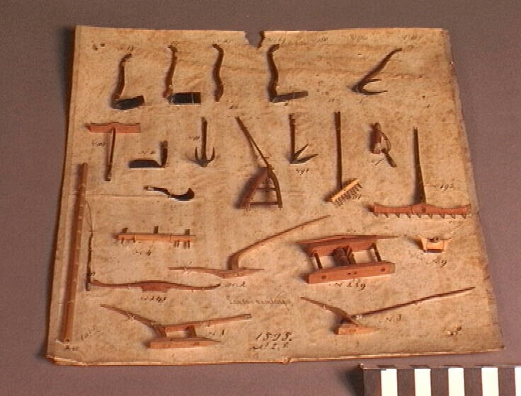 Modellen van zesentwintig landbouwwerktuigen en timm...